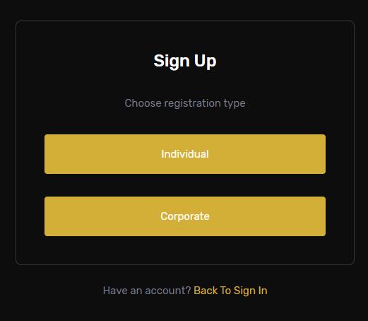 2. Choose your Registration Type: Individual or Corporate to continue.