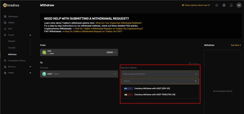 How Do I Make a Withdrawal Request on Tradiso via Cryptocurrency?