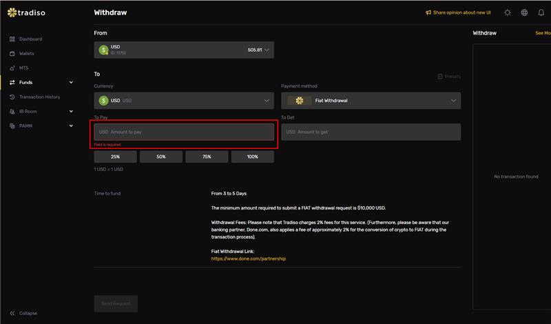 How Do I Make a Withdrawal Request on Tradiso via FIAT?