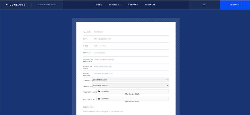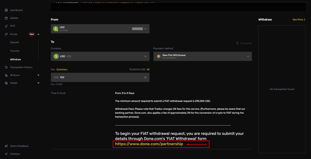 Step 7: To begin your withdrawal request, click the link below and complete Done.com’s FIAT Withdrawal form: https://www.doneotc.com/tradiso